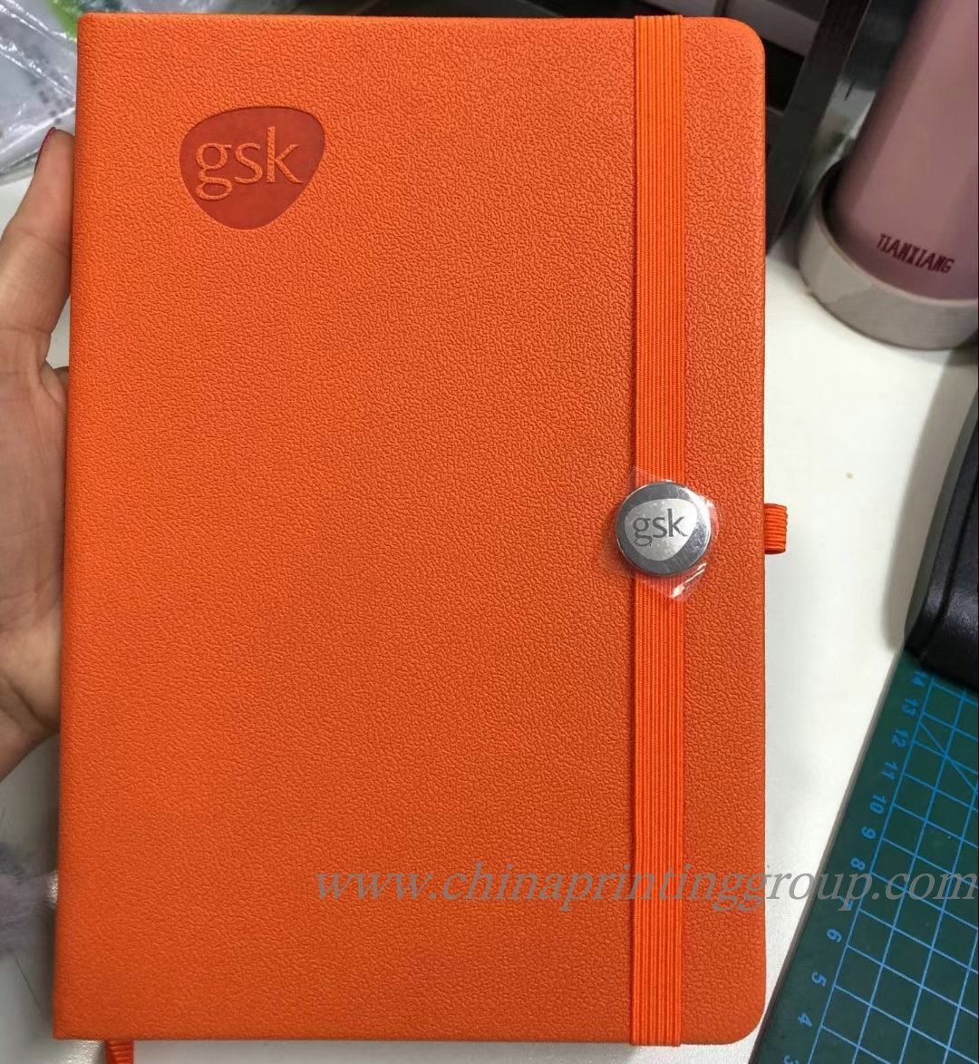 Covers of custom printed notebooks can be fully customized with logos, slogans, and brand colors.